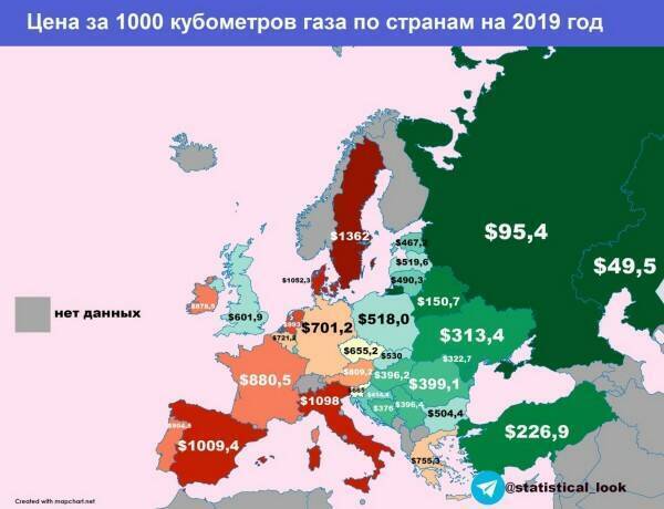 Внизу инфографика о стоимости газа в Европе в 2019 году.