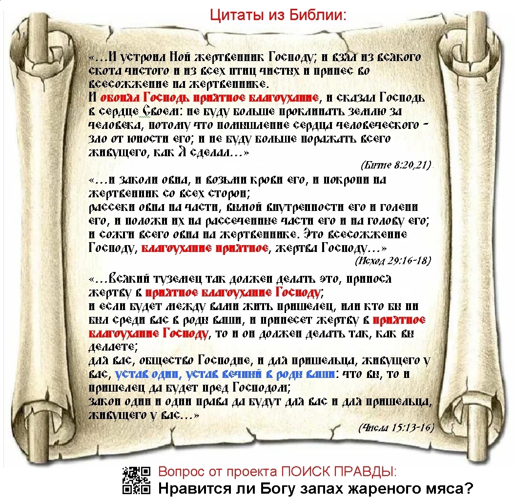 Однако остаётся вопрос - ожидает ли Бог жертвы благодарения в наше время...