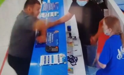Видео с камер наблюдения, на котором посетитель агрессивно разговаривает с работниками парка, а потом бросает калькулятор в лицо девушки, было опубликовано в Instagram****.