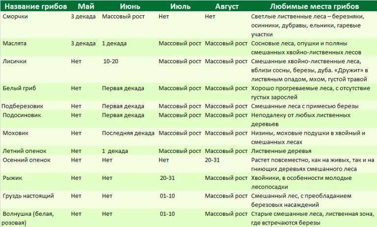 А вообще по всей области в августе начинают прорастать такие грибы: белый, подосиновик, маслята, рыжики, волнушки, дубовики и многие другие. Но эти сорта появляются преимущественно в лиственных лесах. А вот на востоке региона, где в большинстве хвойные деревья, можно найти сыроежки, летние опята, сморчки, желтые и бурые моховики.