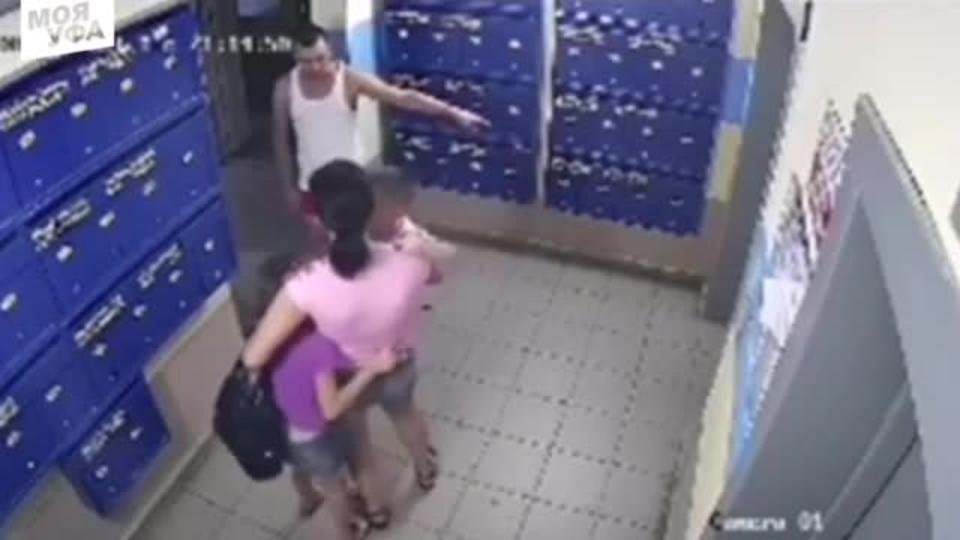 Очередной случай в Уфе. Пьяный мужик, на глазах у матери бьет собственного 3 летнего сына и свою девятилетнюю падчерицу. Все это зафиксировали камеры видеонаблюдения установленные в подъезде.