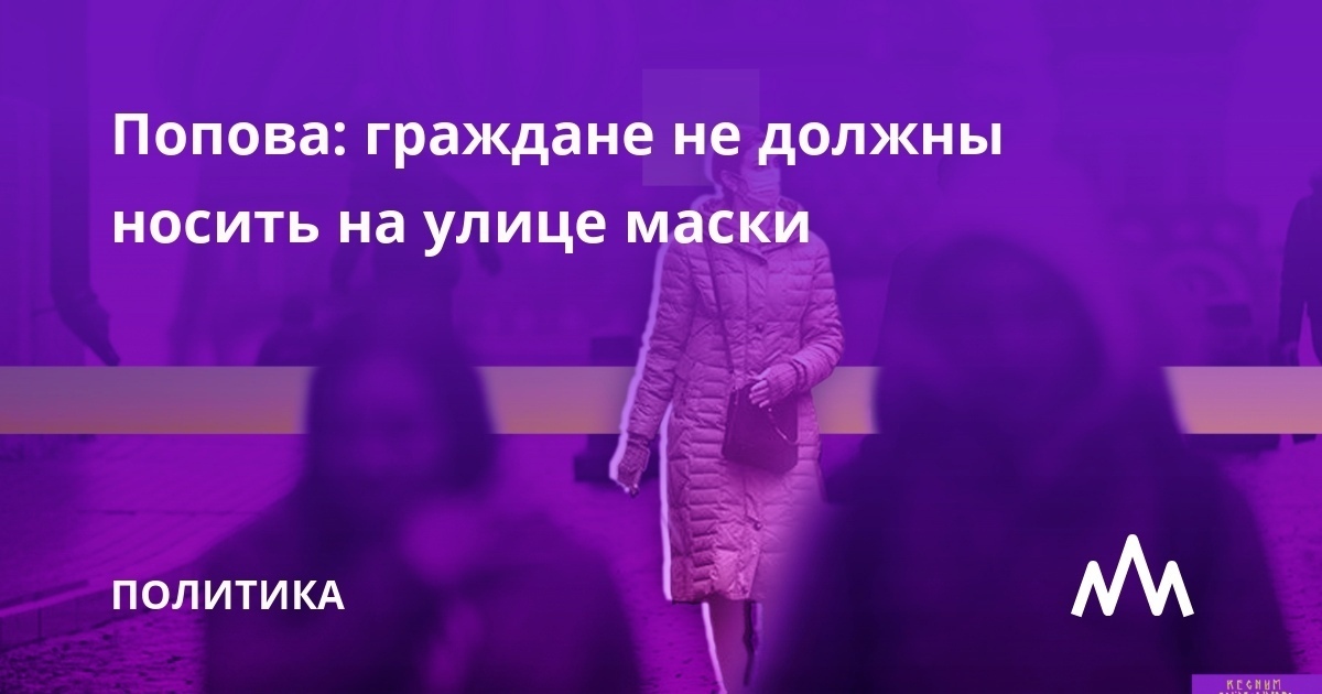 Носить маски на улице в качестве противоэпидемической меры не нужно, если только речь не идёт о массовом мероприятии. Об этом 6 августа заявила руководитель Роспотребнадзора Анна Попова в интервью на телеканале «Россия 24».