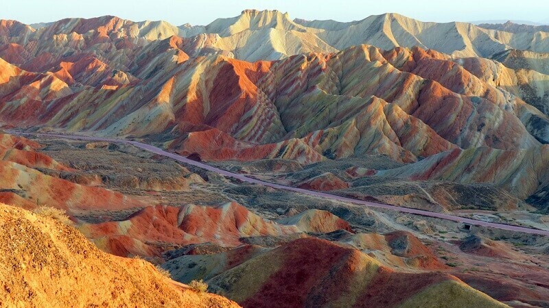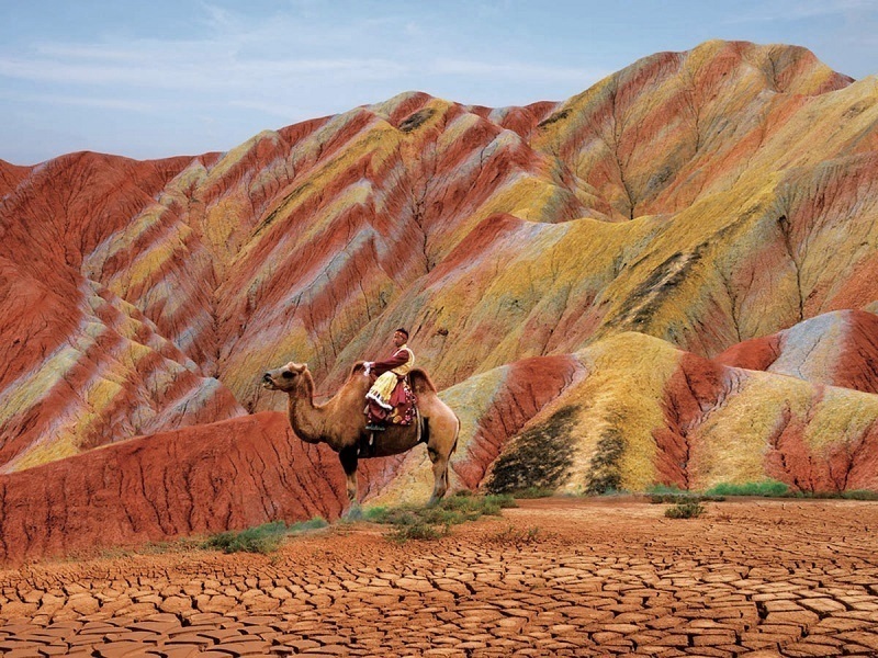 Эти горы в Китае, их как будто их раскрасили акварелью, горам боле 70 млн лет. Цвет появился из за озера которое высохло и окислилось в виде цвета.
