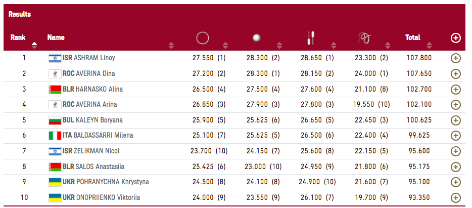 Вот это борьбу навязали гимнастки друг другу! Лирой Ашрам — первая, Дина и Арина вторая и третья. А следом еще очень близко идет Гарнасько... Ох, какой же накал нас ждет!