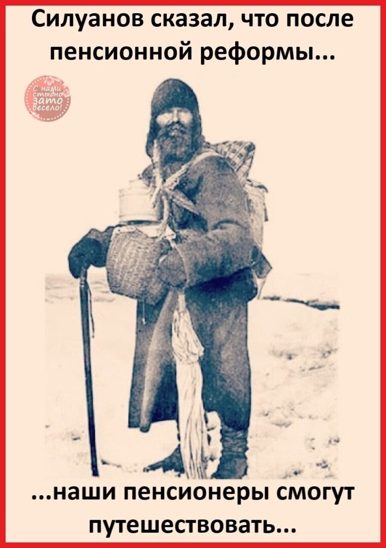 Правильно все написали! У нас в стране пенсионеры нищие и убогие с затравленным взглядом или озлобленные. У них нет будущего. Слова "путешествие по миру" для них пустой звук! Как больно на все это смотреть. Я сама пенсионер с нищенской пенсией и говорю это не ради красного слова