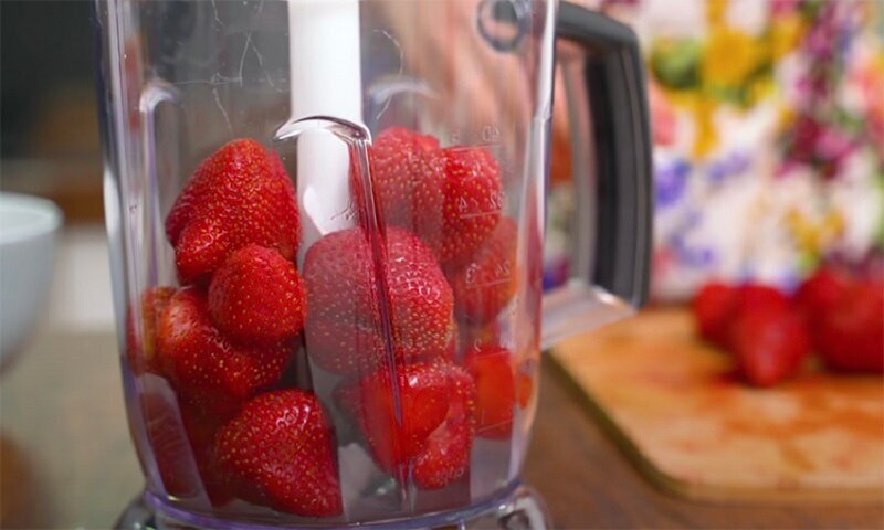 Ягоды тщательно промываем, удаляем с них плодоножки. Половину ягод нарезаем ломтиками или дольками, а вторую половину измельчаем в пюре в блендере или перетираем через дуршлаг (крупное сито).