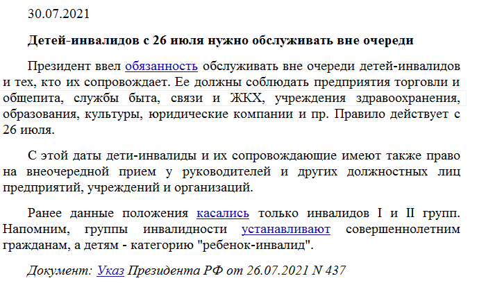 Детей-инвалидов с 26 июля 2021 нужно обслуживать вне очереди.