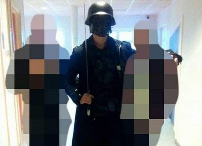 На первый взгляд похоже на снимок с Хэллоуина. Так же подумали и двое шведских школьников 22 октября 2015 года, когда 21-летний Антон Лундин Петерсон пришел в таком виде в их школу в Тролльхеттане: они приняли происходящее за шутку и радостно сфотографировались с незнакомцем в странном наряде.