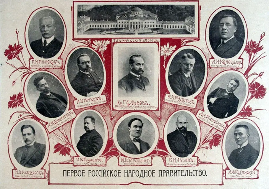 Временное правительство, образовавшееся после отречения Николая II в марте 1917 года, составили деятели, заседавшие в царской Государственной Думе, то есть легальные политики. До революции они яростно критиковали царскую власть и политику, и формировали то, что называется общественным мнением. Формировали его открыто, пользуясь легально существующими средствами массовой информации. Да и кроме печати у этих деятелей было кое-что. Например, крупные финансовые средства оппозиционных к самодержавию капиталистов и легальные всероссийские организации, участвовавшие в снабжении воюющей армии. Имелось и влияние на царских сановников. Большинство этих политиков принадлежало к либеральным партиям кадетов и прогрессистов.