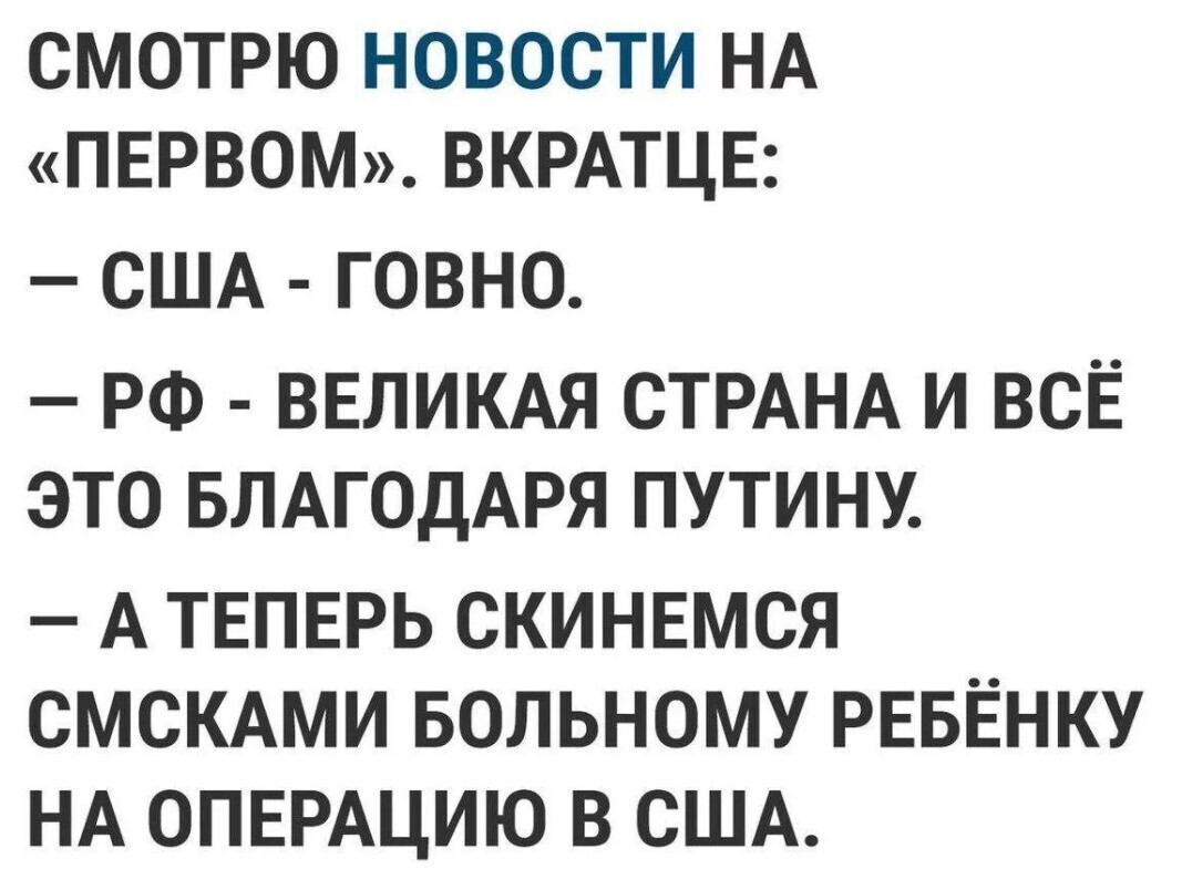 Причем, как мы с Вами, уважаемый читатель знаем, пропаганда уходит впустую. Никто уже давно не верит в то, что все в России хорошо. Для этого достаточно посмотреть программу, собирающую деньги на лечение ребятишек.
