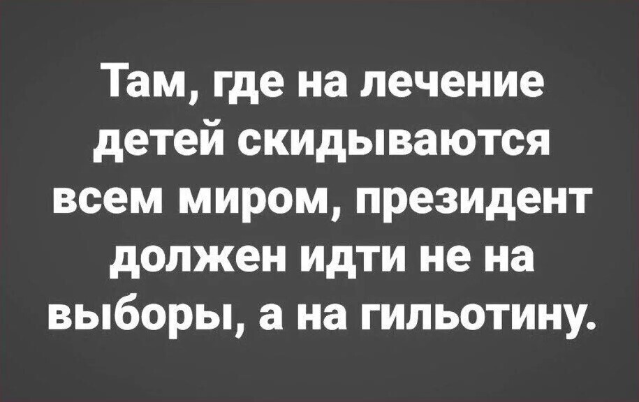 Деньги на лечение детишек собирают сейчас на многих каналах. Смотреть на эти сюжеты очень тяжело. Видишь родителей, которые НЕ знают, как помочь своему малышу...Бедные россияне, которые сочувствуют и сопереживают, отправляют кто сколько может. А зажравшиеся на народные деньги чиновники бездействуют...а, ведь деньги ЕСТЬ.
