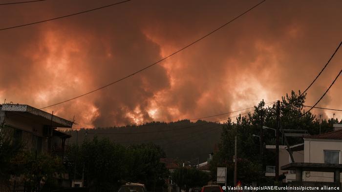 В соседней Греции продолжается борьба с пожарами. Хотя пожарные и жители острова предотвратили распространение пожаров на острове Эрибос (Эвия) на центр острова, сообщалось, что пожары продолжаются во многих прилегающих районах. Островитяне заявили, что в некоторых районах они практически не получали воздушной поддержки, в то время как заместитель министра гражданской обороны и кризисного управления Греции Никос Хардалиас оправдал это ухудшением условий полета из-за задымленности. Хардалиас сказал, что дым сильно ограничивал видимость и не позволял бороться с огнем с воздуха. Тысячи людей были эвакуированы с острова из-за пожаров.