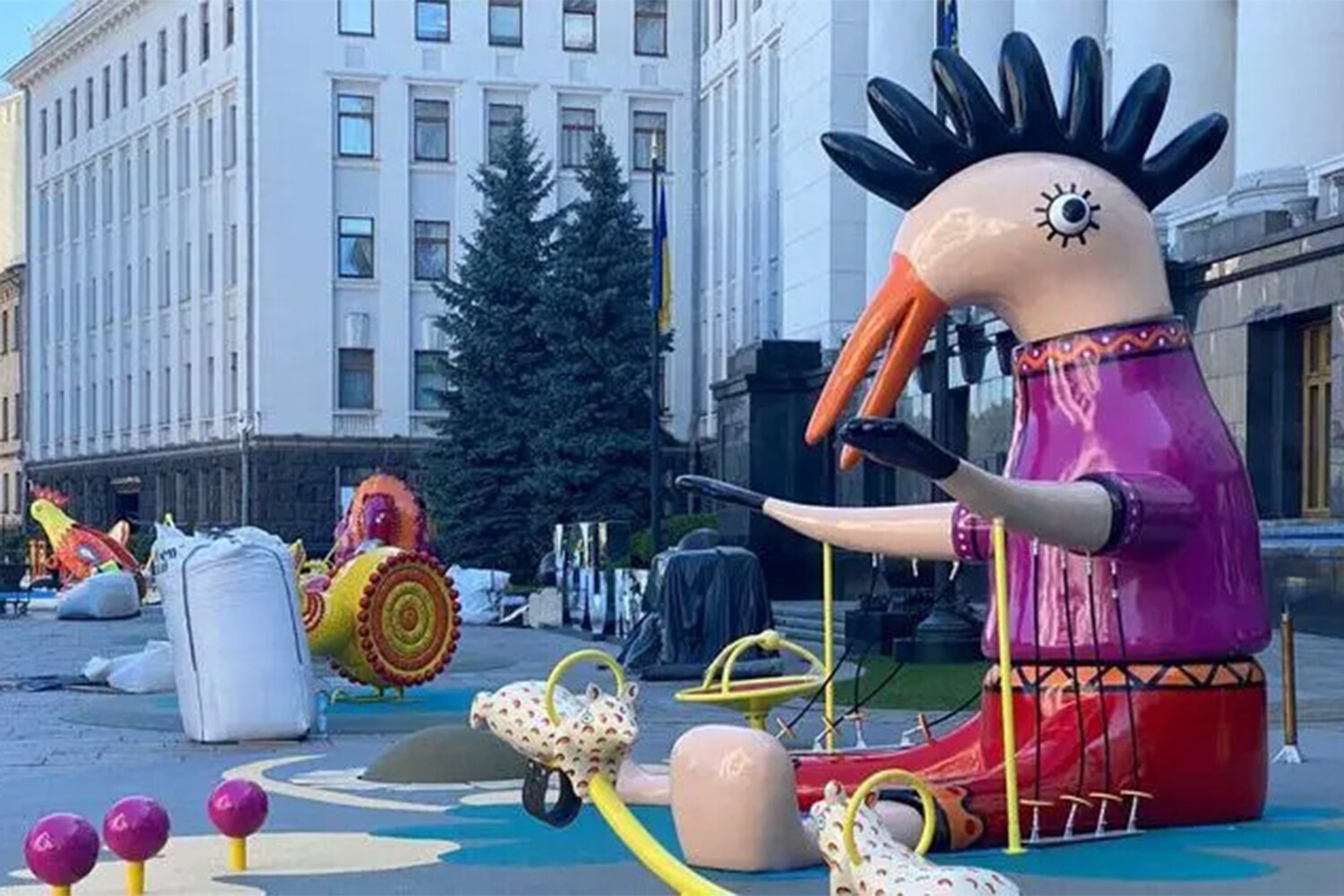 Один из арт-объектов, которые были установлены у стен офиса президента Украины Владимира Зеленского ко Дню независимости, стал причиной скандала из-за «русской косоворотки». Об этом сообщает издание strana.ua.