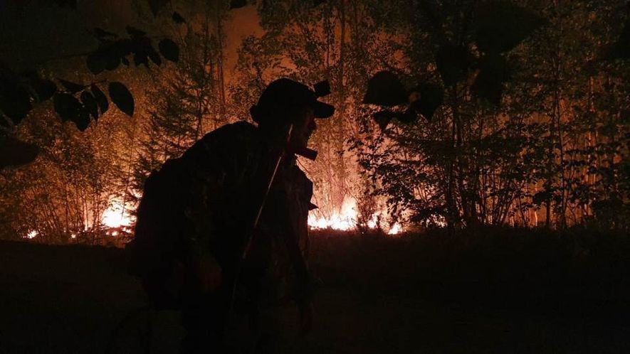 Анна Попова, жительница Сангара: "На протяжении трех дней я работаю добровольцем. В данный момент мы находимся на отжиге в районе "Орбиты" и направляемся дальше, где военная часть. Будем проводить встречный пал. И до утра должны караулить, чтобы огонь не вышел за периметр. Надо быть наготове, чтобы искры не раскидало вокруг.