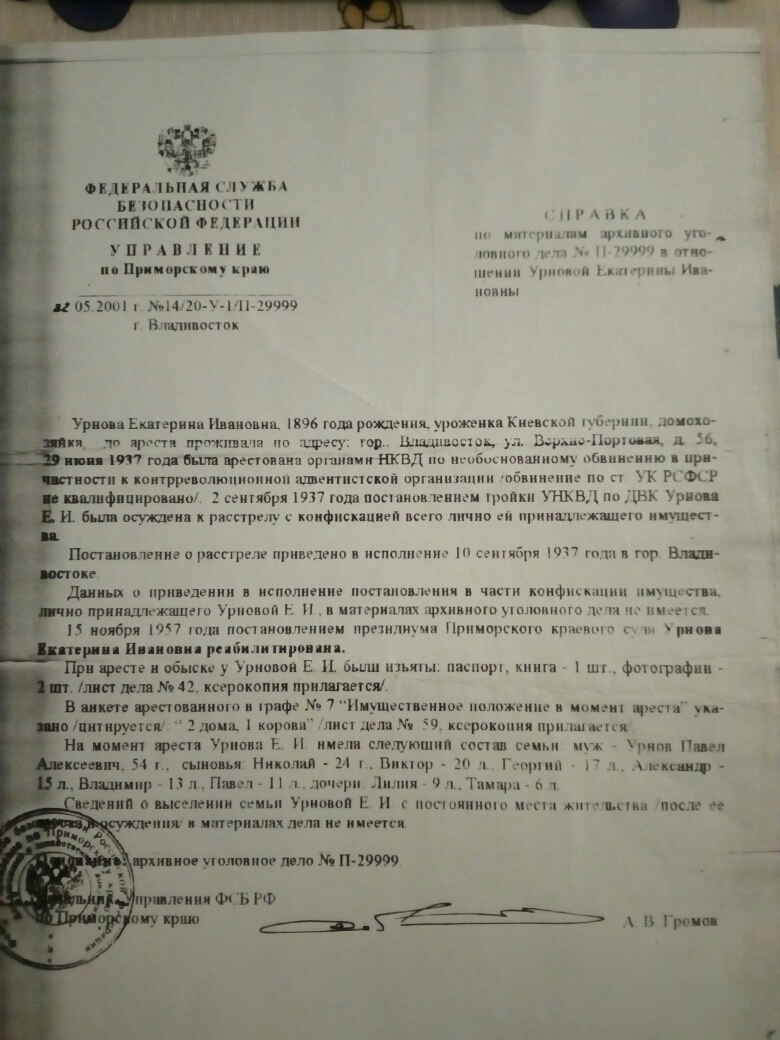 Если умная, в реестре репрессированных загуглить, заодно и посмотришь, за что людей жизни лишали.