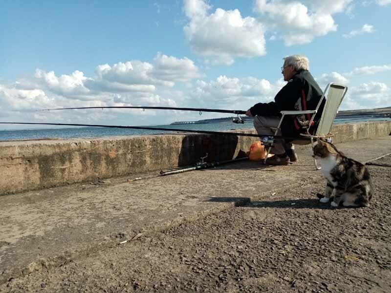 Много котов и на набережных Крыма - за каждым рыболовом закреплен отдельный смотрящий.