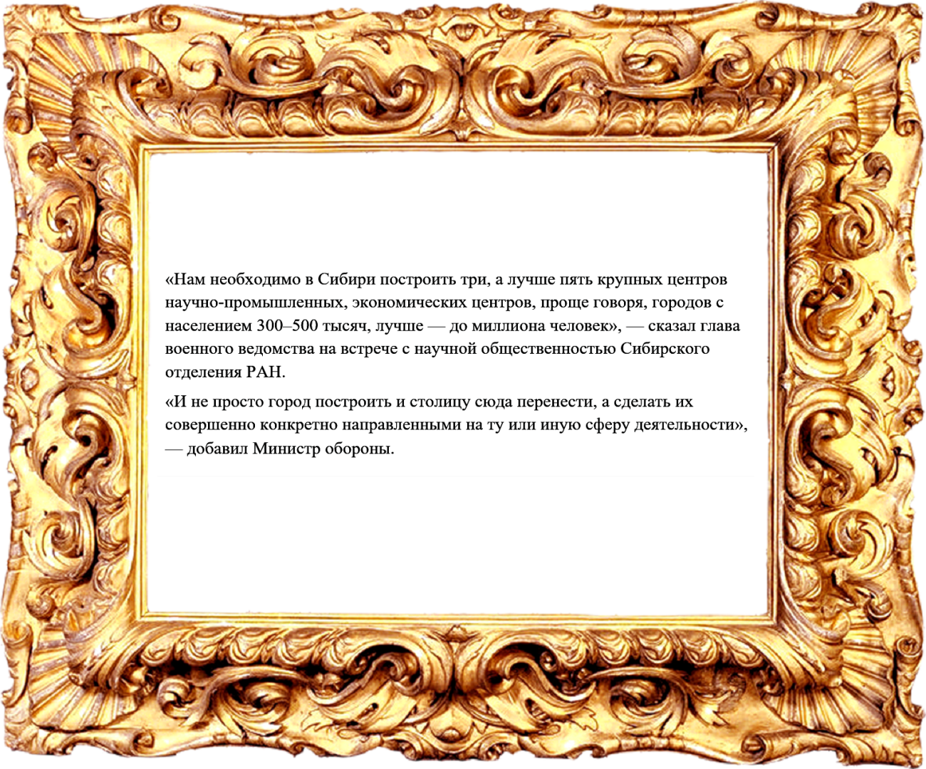 Но, господин Шойгу не просто мечтает о больших и прекрасных городах в Сибири. Он мечтает перенести столицу Государства на территорию Сибири.