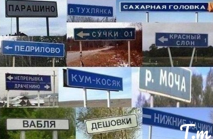 Таких смешных названий в России полно! В нашем регионе есть город Дно, деревни Недомерки, Лобок...