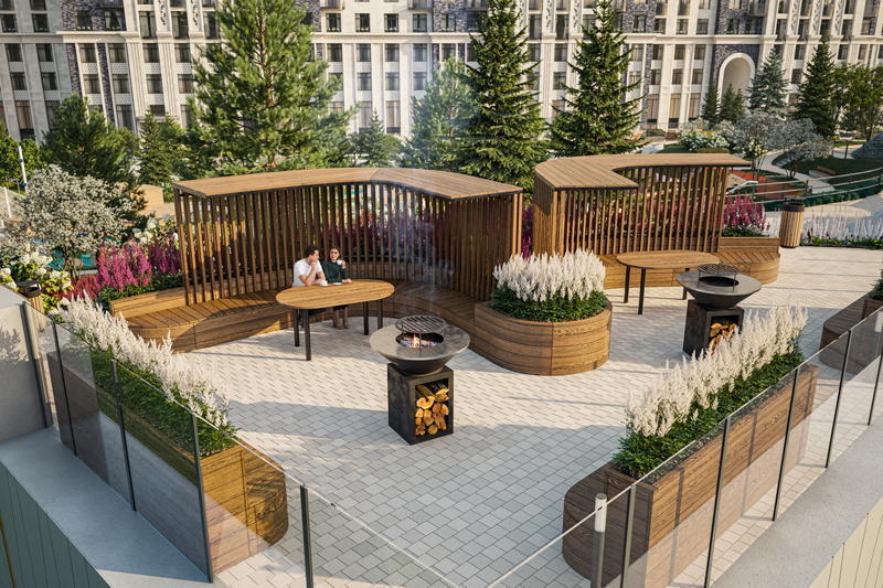 Когда говорят о дворах, почему-то зачастую забывают о подростках. А ведь им важно интересно проводить время. В Sminex подумали о тинейджерах тоже. Для них оборудовали зону паркура и настольный теннис. На закрытой территории дома есть и места, где будет интересно и весело всей семье и друзьям: сделать шашлыки в специально оборудованной зоне барбекю, прогуляться возле пруда или устроить представление в амфитеатре.