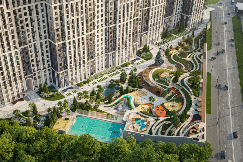 Все это компания Sminex учитывает в своих проектах. Например, двор дома «Достижение», который расположен в окружении парков северо-востока Москвы, уже сейчас можно назвать одним из самых интересных и оригинальных в плане организации пространства. Когда девелопер продумывал здесь самую комфортную среду для жизни, концепция обустройства двора площадью 1,7 гектара стала едва ли не основной.