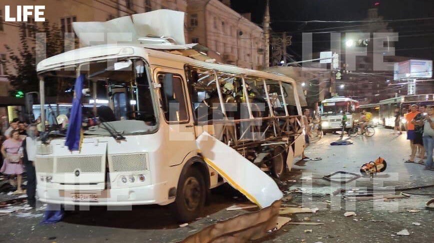 "Мы стояли на остановке, люди заходили в автобус. Заходили, загорелся красный, они уходили с пешеходного перехода. Уезжать — такой хлопок, стёкла, дым, я ничего не понял даже", — говорит Алексей на видео, которое оказалось в распоряжении Лайфа.