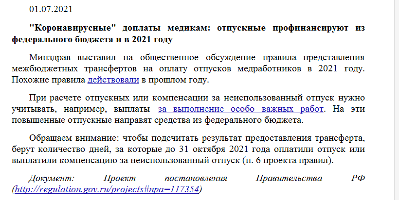 "Коронавирусные" доплаты медикам: отпускные профинансируют из федерального бюджета и в 2021 году