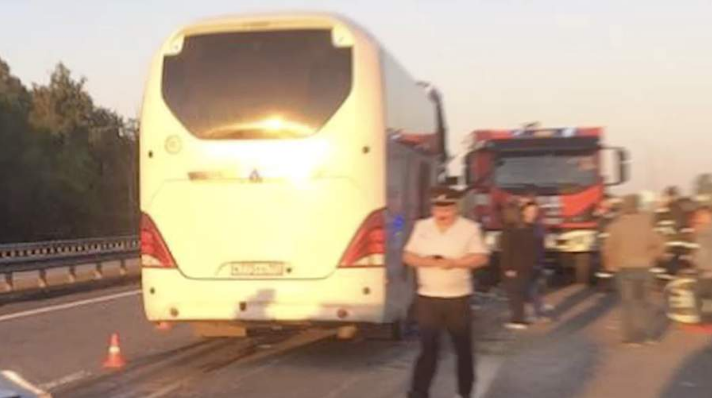Как видно на фото, опубликованных РЕН ТВ, автобус получил серьезные повреждения.