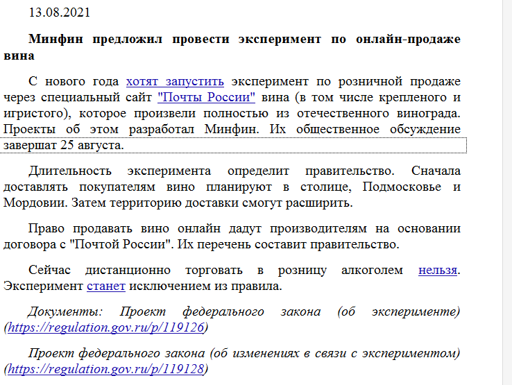 Минфин предложил провести эксперимент по онлайн-продаже вина.