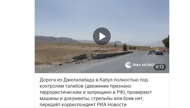- Боевики запрещенного в России террористического движения «Талибан» в воскресенье вошли в столицу Афганистана — Кабул. Они объявили, что взяли под контроль всю территорию Афганистана, а также президентский дворец.
