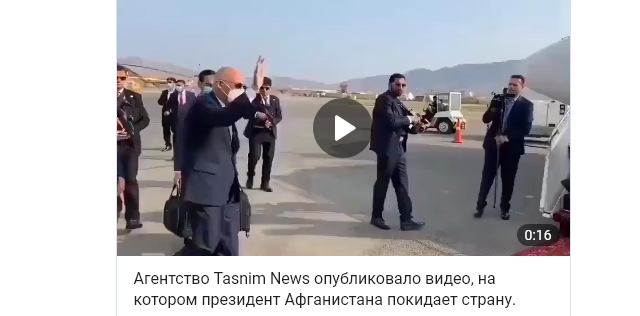 - Президент Афганистана Ашраф Гани бежал из страны, сообщили Asia-Plus и афганское TOLO News.