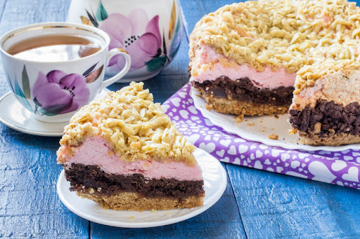 Выпекается она обычно из двух видов песочного теста – одного белого, а второго – шоколадного с какао-порошком. А между коржами намазывается повидло или же вкусный джем по своему желанию.