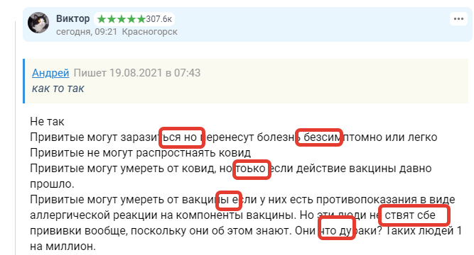 Я еще понимаю, когда такой бред несли люди XVIII века. Но какими же должны быть неграмотными имбецилами люди, повторяющие их в XXI веке! Но, оказывается, в России таких более чем достаточно, особенно среди старшего поколения: окончившие советские, «самые лучшие» и дающие «самое лучшее образование» школы и даже институты и университеты индивиды несут такую дичь про прививки, что хоть святых выноси для изгнания бесов из совершенно свихнувшейся части бывших советских людей.