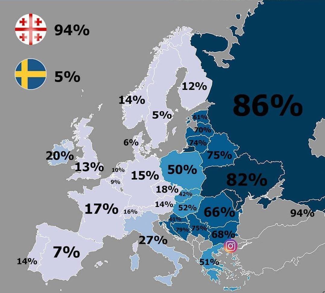 Чем выше уровень жизни и цивилизованный страна тем процент ниже