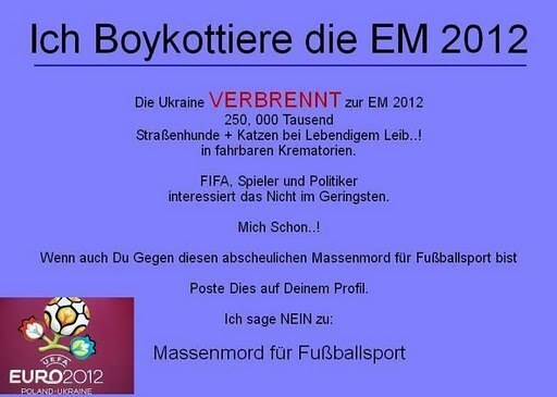 В 2012 тогдашний президент Украины Виктор Янукович призвал к массовому истреблению собак в связи с подготовкой ЕВРО 2012 (Чемпионата Европы по футболу) .