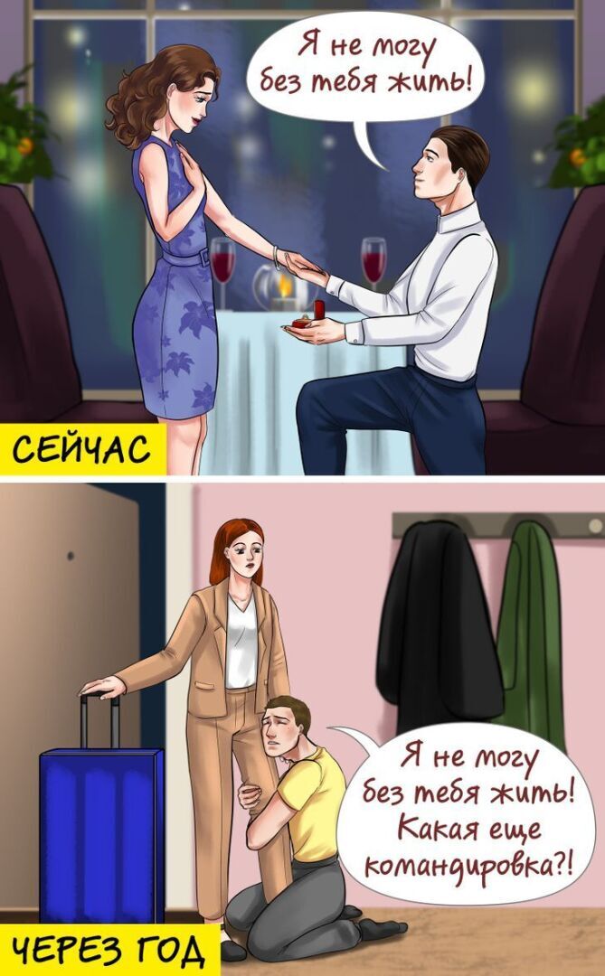 Это очень красивая и пылкая фраза, пронизанная любовью. Но что скрывается за ней, когда она имеет буквальное значение? Если ваш партер искренне признается в том, что не видит своей жизни без вас и что он, возможно, никогда не сможет оправиться от теоретического расставания с вами, то это может свидетельствовать о нездоровой зависимости от отношений. Может быть, это даже кому-то понравится на первых порах, но ровно до тех пор, пока вам не понадобится отлучиться куда-то на несколько дней, — зависимый партнер сделает что угодно, чтобы не допустить вашего физического отсутствия.