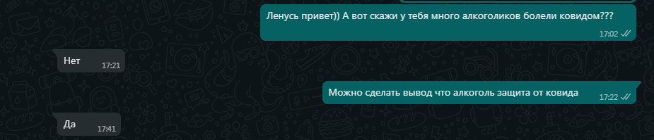 Вы даже в инете не найдёте, что алкоголь защита от ковида..