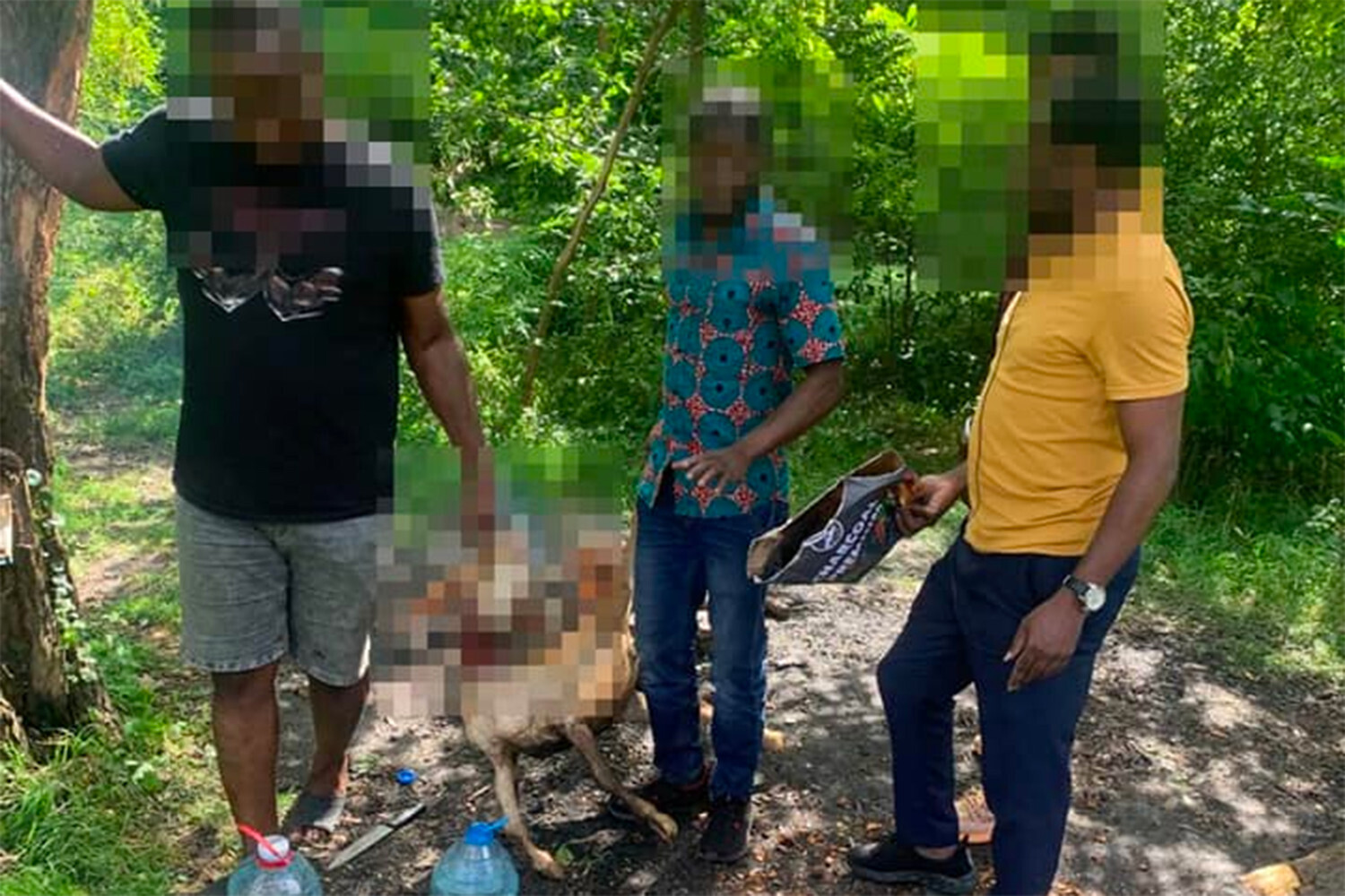 Во Львове четверо темнокожих мужчин убили козу в парке и зажарили ее на костре