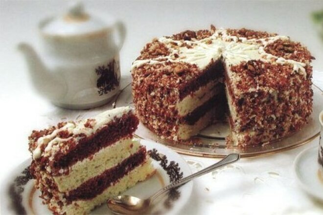 Торт с творожно-шоколадной прослойкой. Легкое приготовление, превосходный вкус.