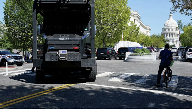 Для работы журналистов предусмотрена площадка на пересечении улицы 1 и Constitution avenue, с северо-западной стороны Капитолийского холма — за много сотен метров от подозрительного автомобиля.