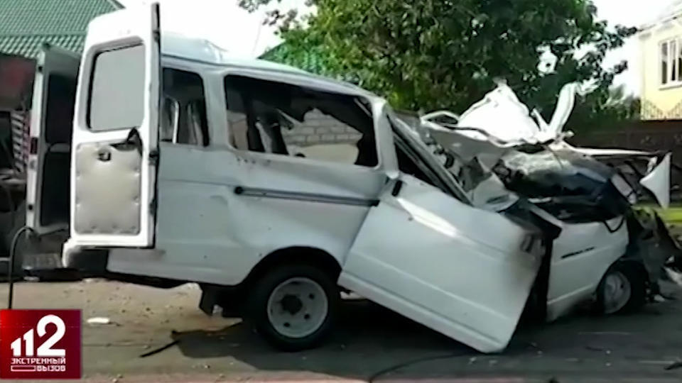Вот эти кадры - центр населенного пункта, "Тойота" на огромной скорости врезается в микроавтобус с пассажирами.