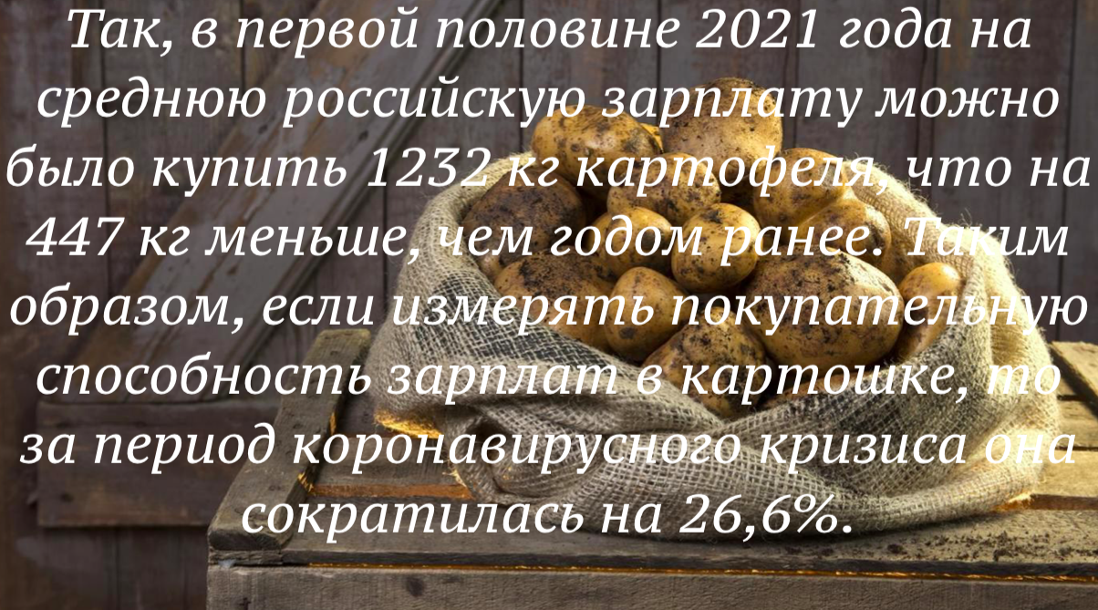 Вот и оказалось, что после коронакризисного 2020 года простой россиянин смог позволить себе на 447 кг картошки меньше, чем до и в начале пандемии.
