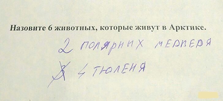 Меня как-то назначили Председателем экзаменационной комиссии в 8 (сейчас 9 классе). Сочинение по "Повести о настоящем человеке". Девочка пишет:" После замерзания в лесу, Мересьев заболел чИхоткой и умер"... ЧИхотка, похоже, от слова "чих". Хохотали всей комиссией...