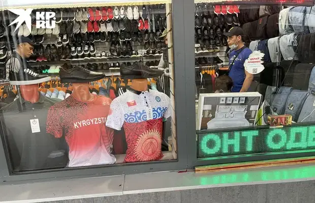 В некоторых магазинах торгуют собственной продукцией - самопошив. На манекенах висят десятки моделей футболок с киргизскими национальными узорами и изображением красно-желтого флага.