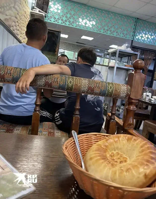 Приезжие здесь могут расслабиться и почувствовать себя, как дома. Например, сесть с ногами на лавку, подняв одну коленку к самому подбородку. В позе киргизской нирваны. И никто при этом не бросает на тебя осуждающие взгляды.