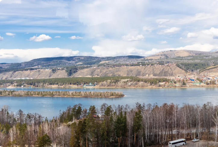 Сверху открывается вид на Енисей, территория зоопарка и горы заповедника Столбы. Если посмотреть назад, то вы увидите сплошной лес, который просматривается далеко вперёд.