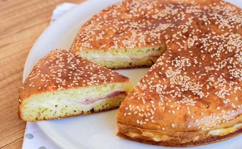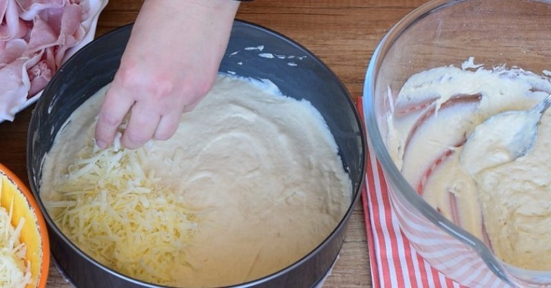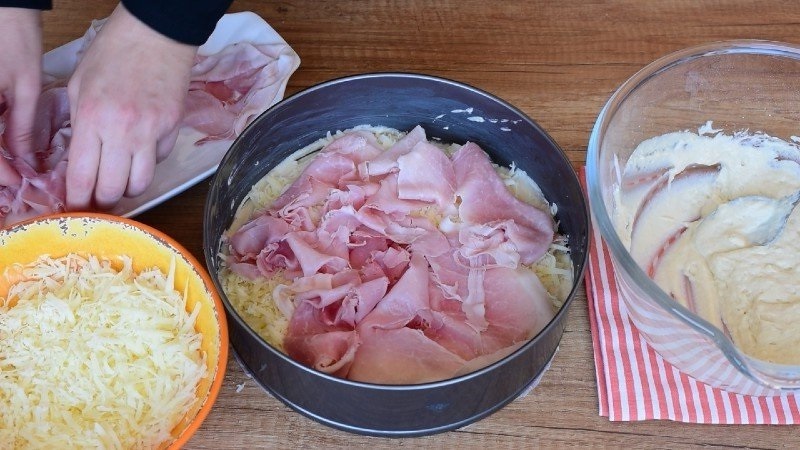 Очень вкусный заливной пирог с начинкой из ветчины и сыра