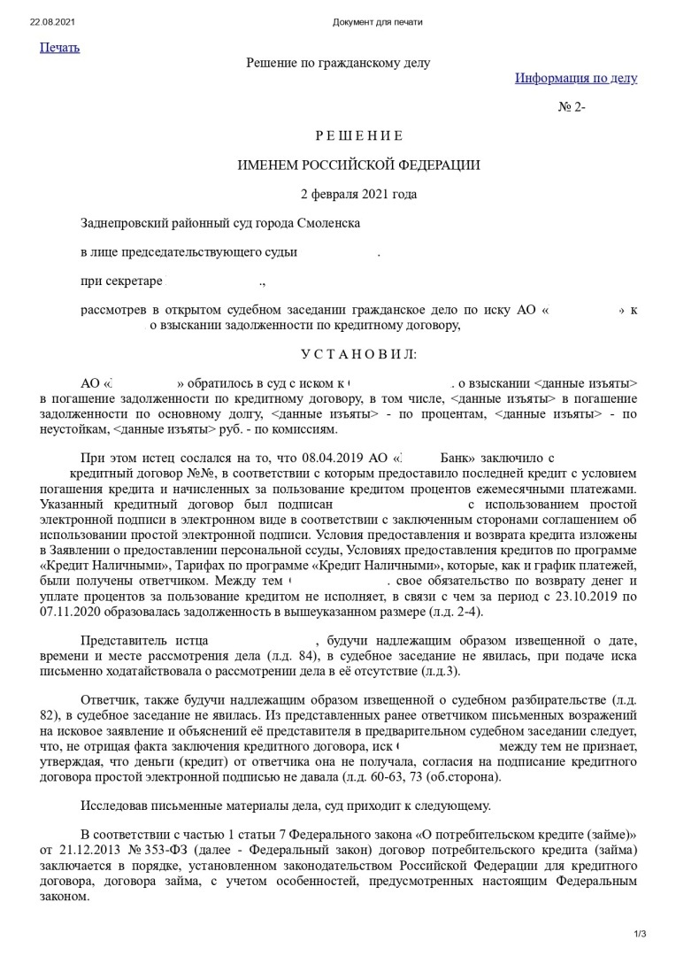 По всей видимости руководствуясь именно такой пословицей один из банков нашей с Вами страны обратился в суд с исковым заявлением о взыскании задолженности с одной из граждан.