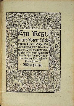 Немецкий трактат о «новой чуме — английском поте», изданный Эврицием Кордом (Генрихом Ритце) в 1529 году