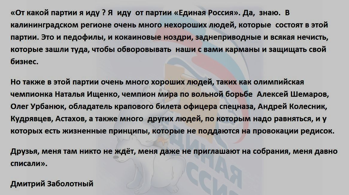 Сам себе не верю, но я впервые в жизни проголосовал бы за единоросса Дмитрия Заболотного...