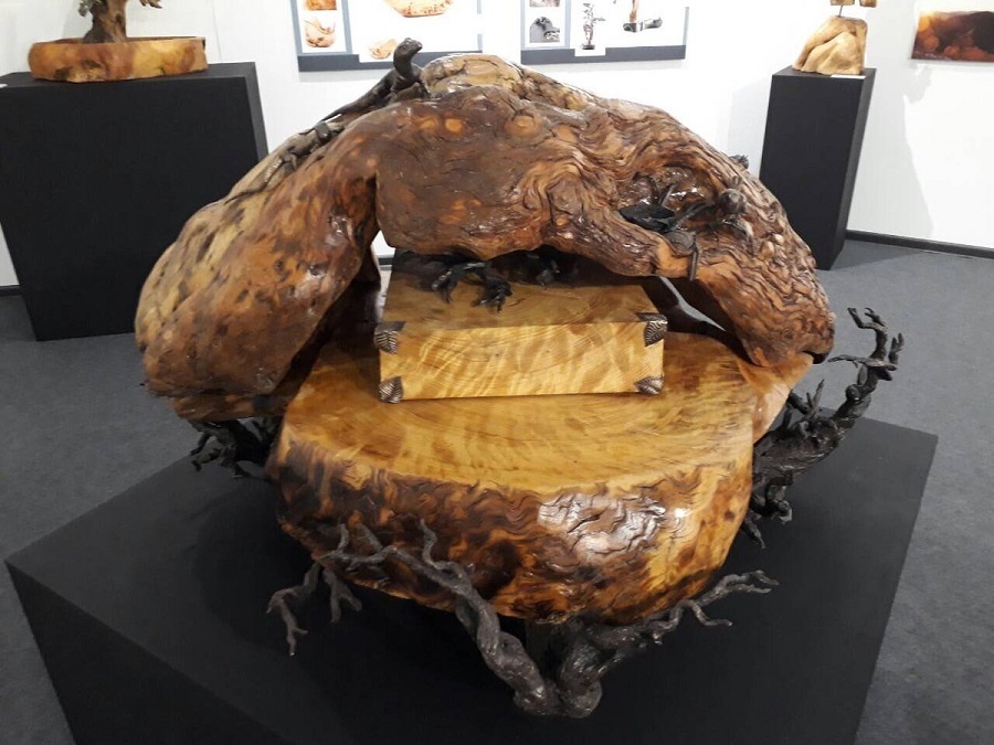Фигуры из дерева часто дополняет металлической живностью, кованными из бронзы и меди ящерицами, черепахами и жучками.